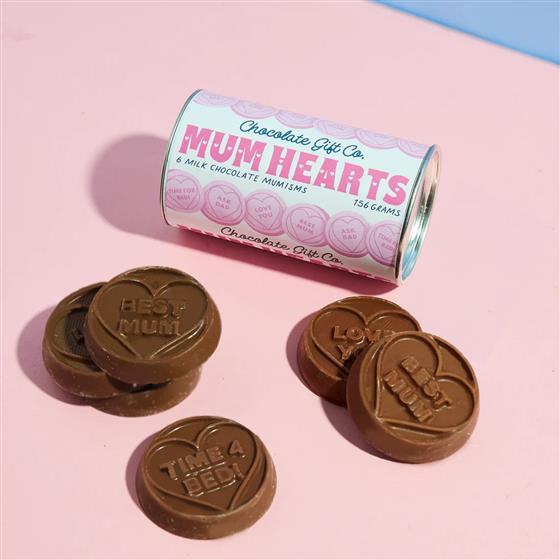 The Chocolate Gift Company beautiful version of the retro sweet, our Mum Hearts are bursting with love and delicious milk chocolate.